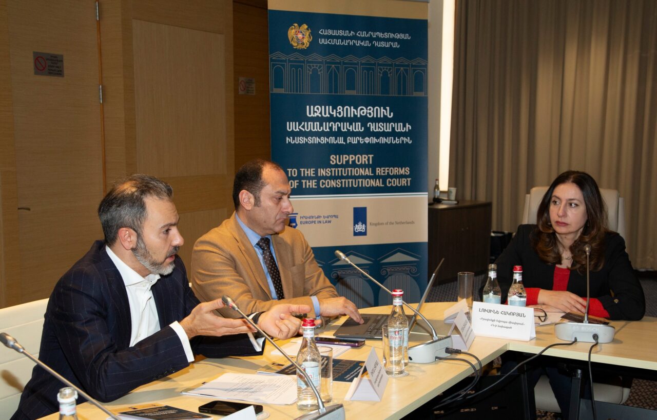 The event was opened by the President of the Constitutional Court of the Republic of Armenia, Arman Dilanyan, the President of the Court of Cassation of the Republic of Armenia, Lilit Tadevosyan, the Minister of Justice of the Republic of Armenia, Srbuhi Galyan, the Chairman of the Standing Committee on State and Legal Affairs of the National Assembly of the Republic of Armeni, a Vladimir Vardanyan, the Ambassador of the Kingdom of the Netherlands to Armenia Marike Monroy-Winter, and the President of the “Europe of Law Union” NGO Lusine Hakobyan.